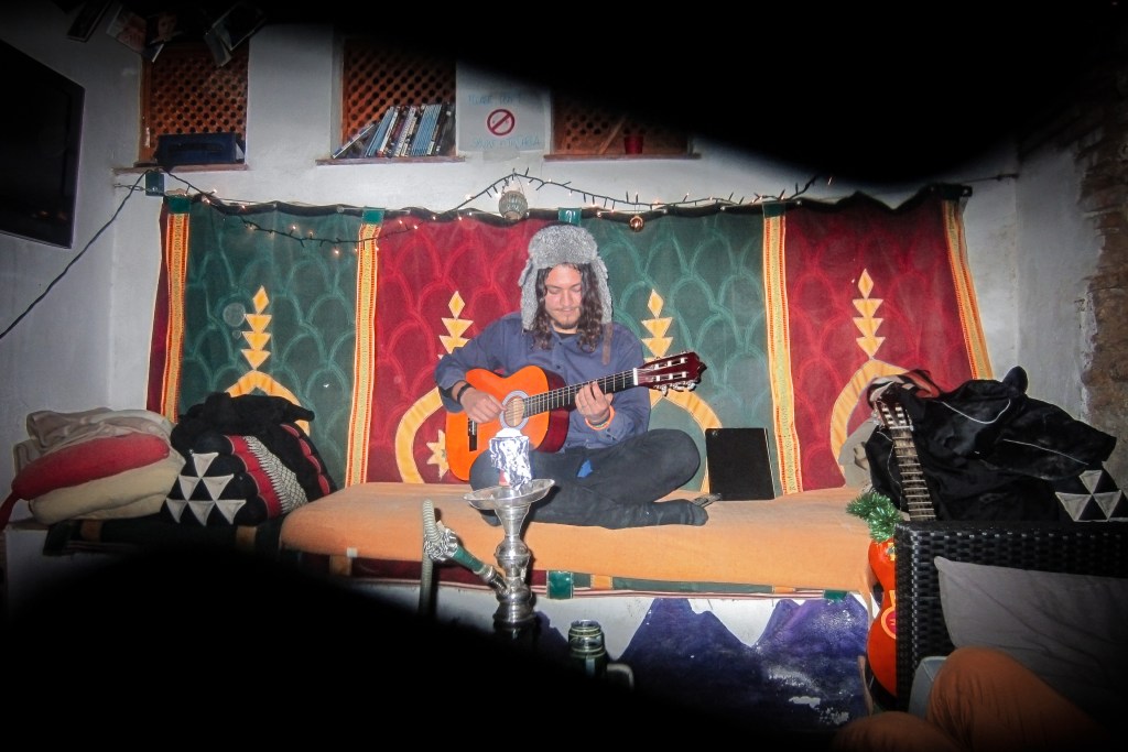 One evening we threw together an impromptu open mic out on the porch. We started with only a cheap hostel guitar, which I drove across the island to buy strings for, cleaned up, strung up and tuned up. Eventually, with some imagination, I managed to set up an electric guitar, vocal and little synthesizer amplified with my laptop and a Bluetooth speaker. Hostel folks came by the porch to hang out, listen, sing, and jam.
